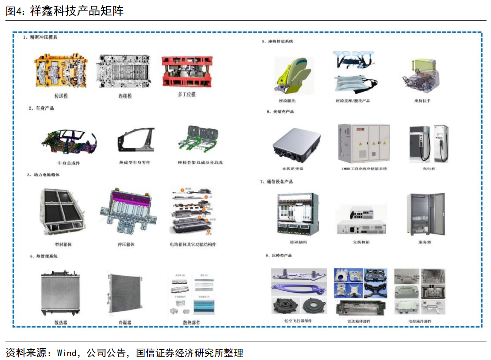 公司以模具及金属结构件能力为基础,覆盖模具生态圈、汽车部件系统、3C产业三大业务板块,主要产品包括汽车五金模具、车身部件、动力电池箱体、热管理系统、座椅舒适系统、光储充产品、通信设备结构件、压铸类产品等,能够为汽车、光伏储能、通信设备等行业的客户提供一体化解决方案和服务。公司具备从金属结构件单品到组件及系统总成的全链条供应能力,并拓展至新能源金属制品、机器人、自动化设备等领域,同时提供货物及技术进出口服务。