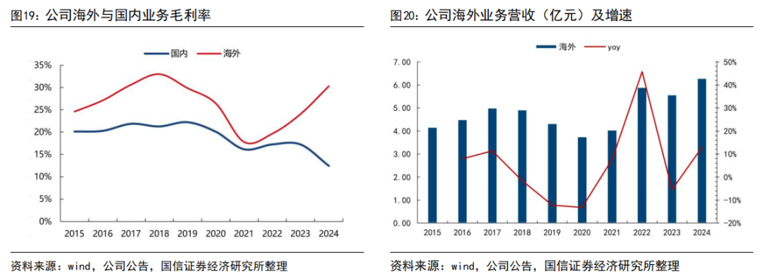 公司积极推进全球化布局,2024年公司海外市场营收6.3亿元,同比+13%,营收占比9.3%,海外业务毛利率30.3%,同比+6.5pct,海外盈利逐步显现。同时公司持续进行海外产能布局,以实现全球客户的持续拓展。