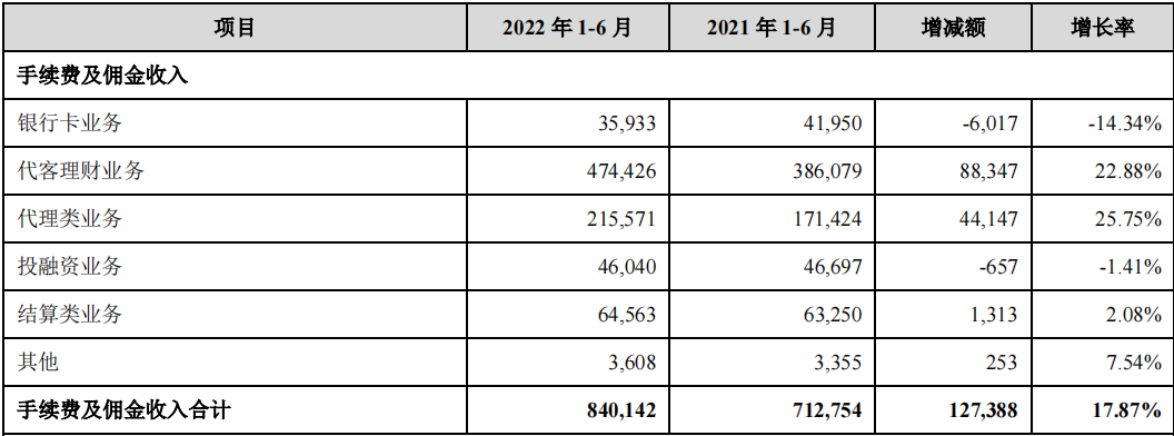 其中,手续费及佣金净收入 7.86 亿元,较上年同期增加 1.24 亿元,增幅 18.65%。