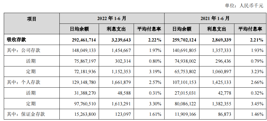 这主要和该行报告期内吸收存款规模增加有关,今年上半年,苏州银行进一步优化结构,拓宽渠道,推动日均存款规模增长,单看存款日均余额方面,无论是公司存款的活期、定期存款,个人存款的活、定期存款,均实现了全方位的提升。