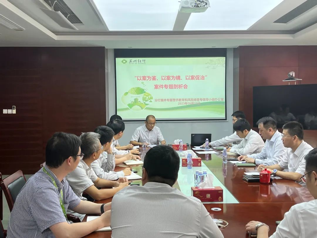 苏州银行高度重视案件防控工作。2023年9月,该行成立总行案件专题警示教育和风险排查专项领导小组,实行一把手负责制,全面领导、组织和实施本机构案件专题警示教育和风险排查工作,同时制定印发《苏州银行关于开展案件专题警示教育和风险排查的工作方案》,突出组织领导、工作安排、深入自查自纠、落实成果检验、加强警示教育宣导等内容。各分支机构参照总行成立相应层级的领导小组,根据实际情况细化制定工作方案。
