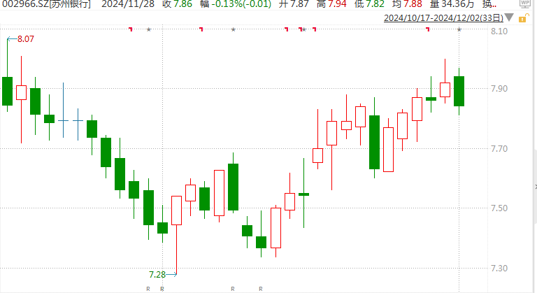而高管们“亲身买股”的举措也鼓舞了股价,2024年11月18日至11月28日变动期间,苏州银行股价上涨4.24%,截止12月2日,苏州银行收盘报7.84元每股。