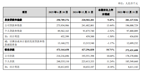 具体来看,今年上半年,苏州银行各项存款余额4627.52亿元,较上年末增加457.87亿元,增幅10.98%;各项贷款余额3634.97亿元,较上年末增加301.39亿元,增幅9.04%。但记者注意到,苏州银行的个人贷款和垫款规模较上年末下滑2.52%,至895.62亿元。而其2023年年报和2024年年报显示,该行个人贷款和垫款规模分别为974亿元和918.76亿元。如此看来,一年半的时间里,苏州银行个人贷款和垫款规模已收缩了78.38亿元。