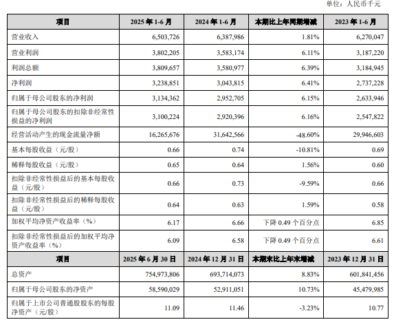 报告显示,今年上半年,苏州银行实现营业收入65.04亿元,比上年同期增长1.16亿元,增幅1.81%;实现净利润32.39亿元,比上年同期增长1.95亿元,增长6.41%;实现归属于母公司股东的净利润31.34亿元,比上年同期增长1.82 亿元,增幅6.15%。记者注意到,江苏省内的另外两家上市城商行江苏银行和南京银行,营收同比分别增长7.78%、8.64%,归母净利润同比分别增长8.05%和8.84%。综上,与省内兄弟上市城商行相比,苏州银行不仅规模比不过,成长性也比不过。