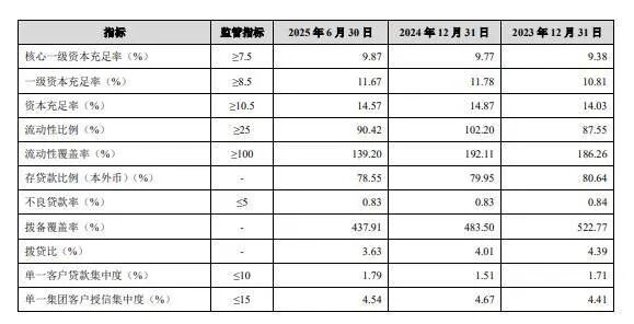 记者注意到,截至报告期末,苏州银行拨备覆盖率为437.91%。企业预警通显示,在42家上市银行中,苏州银行的拨备覆盖率排名第四。统计数据显示,2020年至2024年,苏州银行拨备覆盖率分别为291.74%、422.91%、530.81%、522.77%、483.50%。