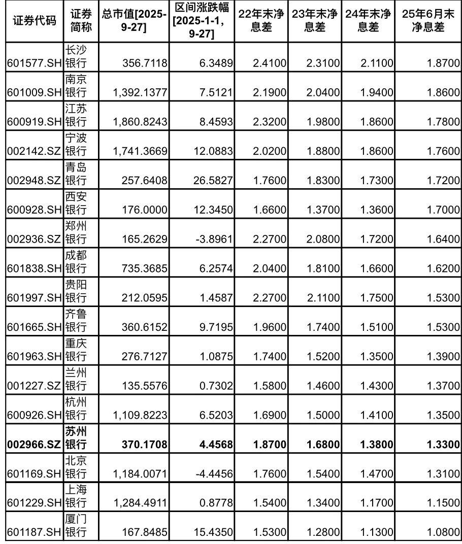 但息差排 A 股城商行尾部