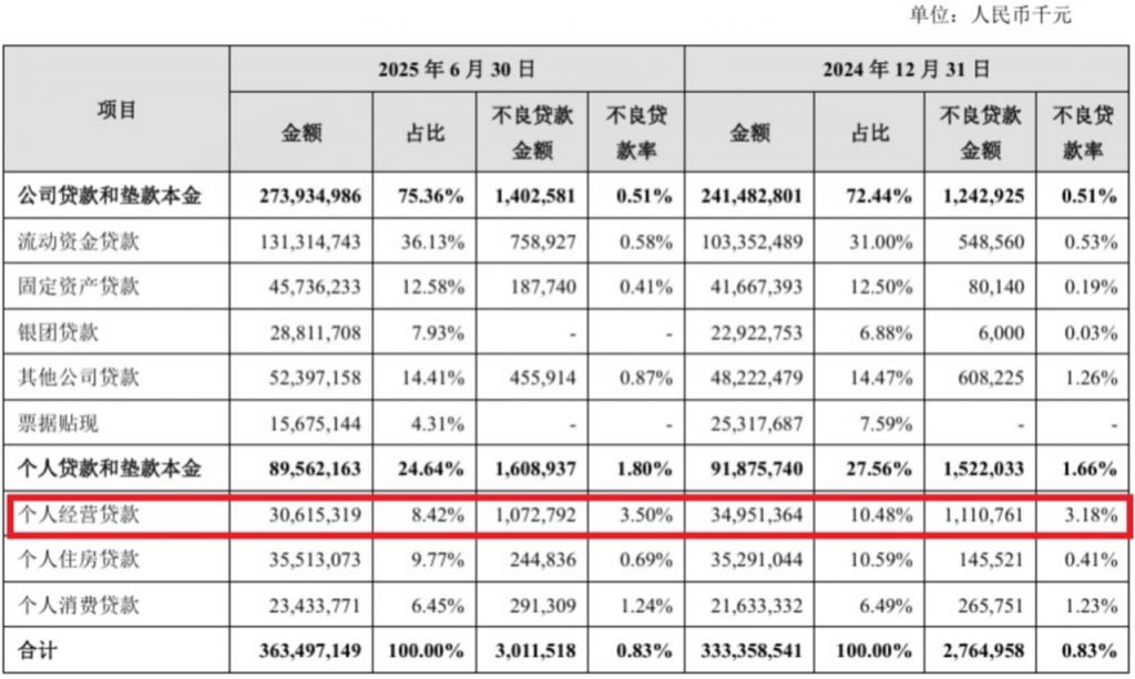 苏州银行经营贷规模下滑、不良率攀升(25 年半年报)