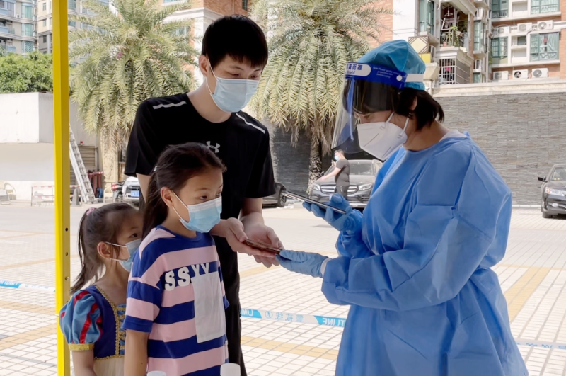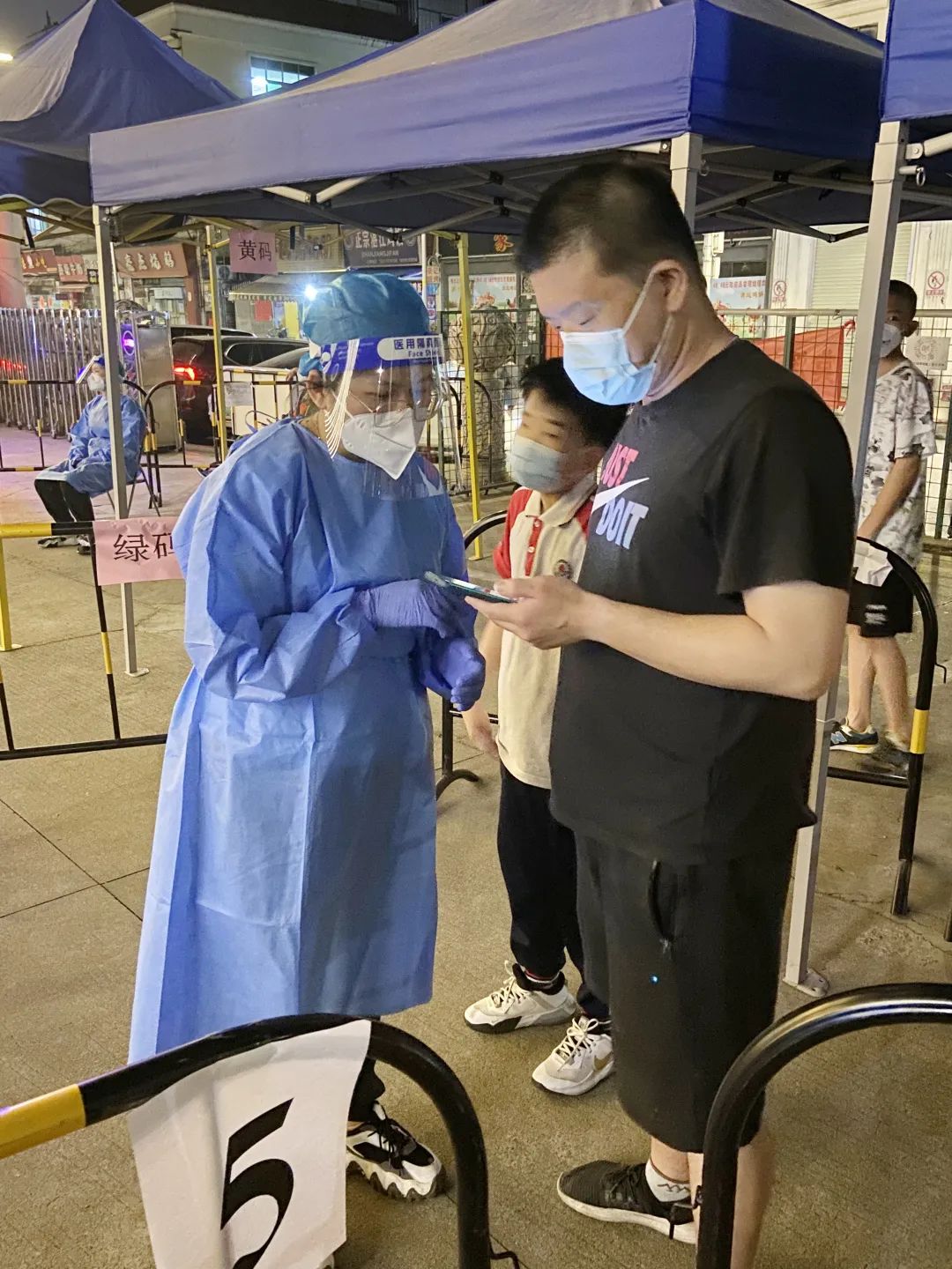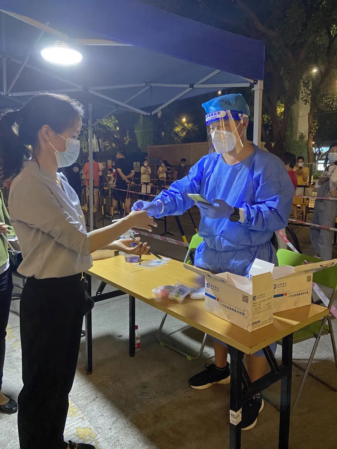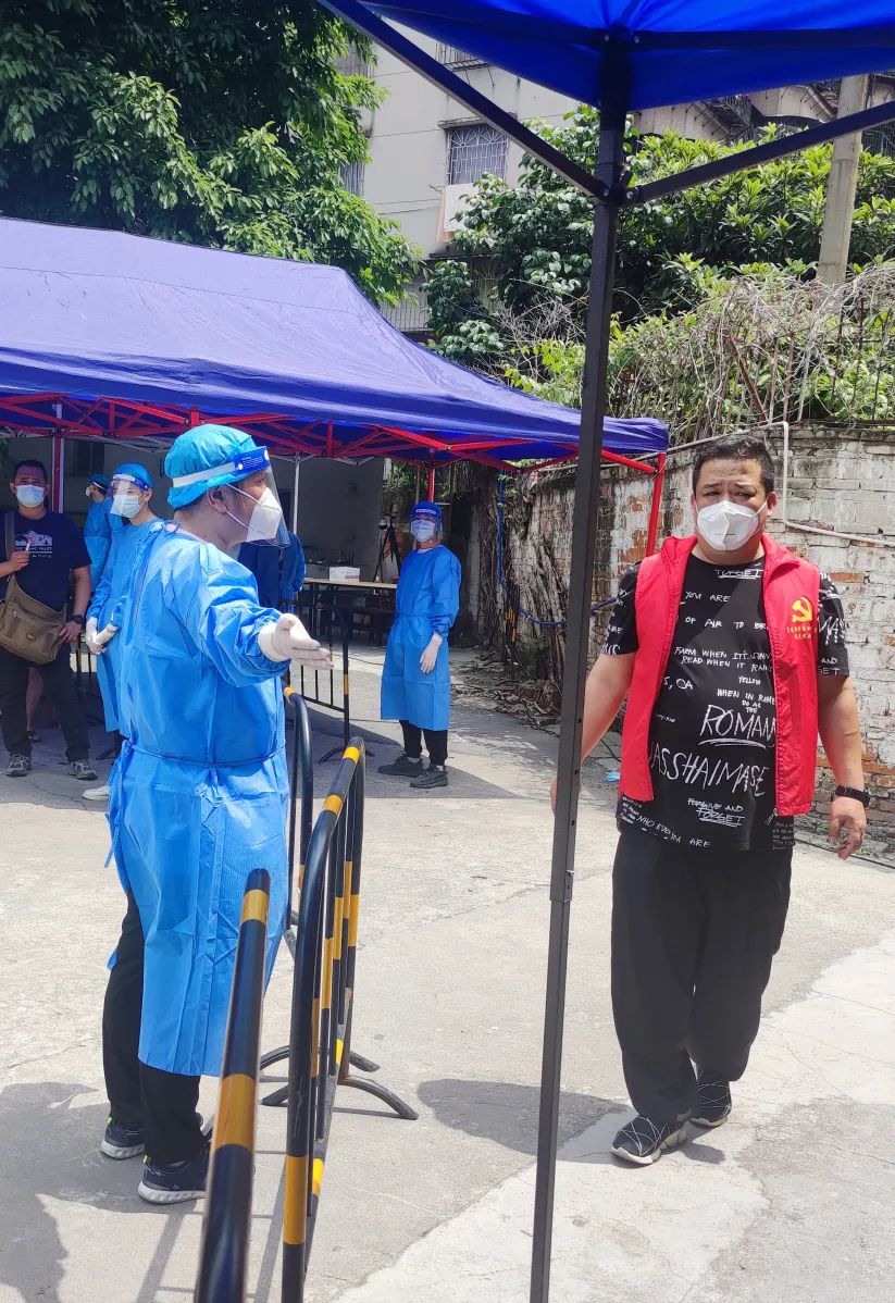 市场综合党支部党员赵敬居住在白云区,此前早已下沉社区多次支援,在4月8日当天更是从晚上8点连续战斗到第二天早上6点。“累一点不算什么,党员就是要关键时刻站出来,重要时刻冲上去,这是我应该做的。”赵敬说。这次来到白云支援点,她主要负责维护排队秩序,一边检查居民健康码和核酸码,一边关注老人、孕妇等群众,把他们指引到绿色通道。看似简单、重复的工作,却时时考验着志愿者们的耐心、细心。在这场争分夺秒的疫情阻击战中,每个人都是不平凡的“逆行者”。