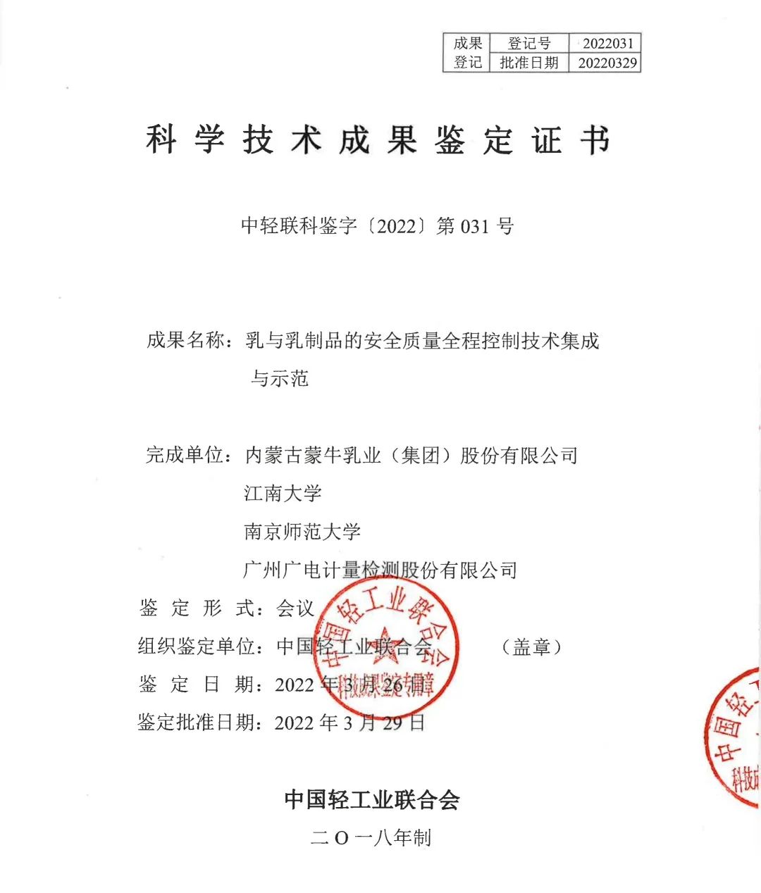 近日,中国轻工业联合会组织有关专家召开了“十三五”重点研发计划项目技术成果鉴定会。广电计量参与的《乳与乳制品加工靶向物质危害控制技术集成应用示范》项目(以下简称“项目”)顺利通过成果鉴定。专家组通过听取研究团队汇报、审阅相关资料、质询讨论等环节,一致认为项目整体技术达到了国际先进水平,具备广阔的推广与应用前景。