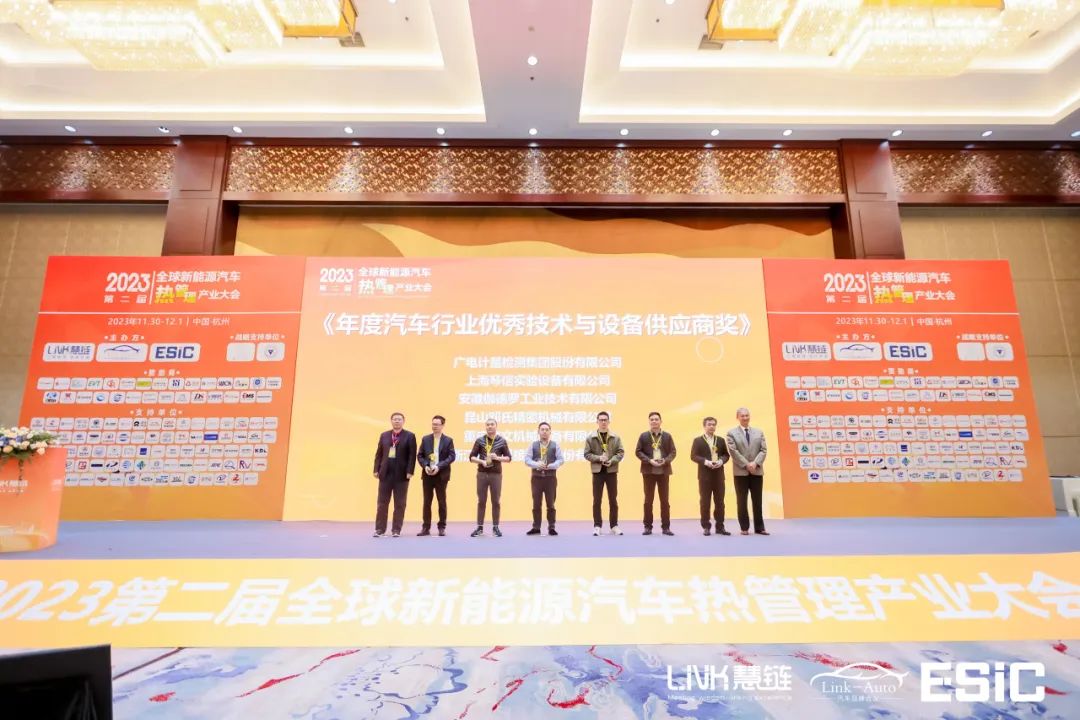 11月30-12月2日,2023第二届全球新能源汽车热管理产业大会在中国杭州召开。广电计量受邀参会并荣获“年度汽车行业优秀技术与设备供应商”金鼎奖;公司新能源技术支持总监韦玮受邀作主题发言,向与会者介绍了广电计量热管理系统解决方案。