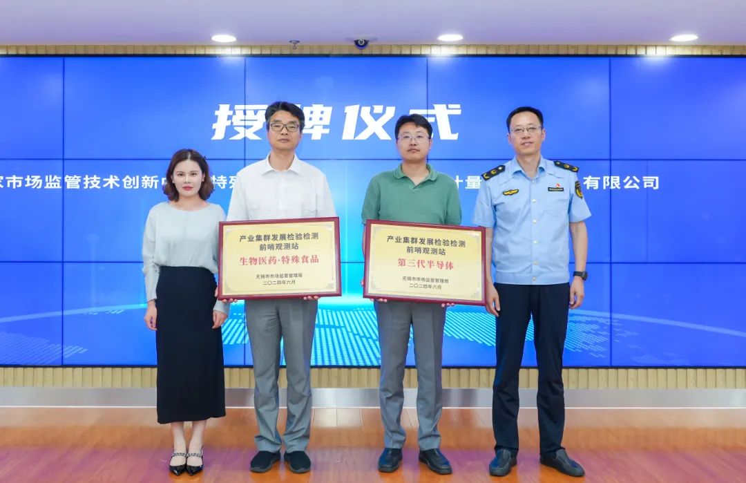 无锡广电计量受邀参与此次活动,凭借在第三代半导体产业领域突出的技术实力和服务能力,获颁“第三代半导体产业集群发展检验检测前哨观测站”。无锡广电计量总经理储程晨代表公司上台接受授牌。