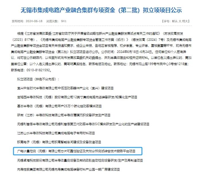 无锡市集成电路产业融合集群专项资金项目,旨在重点支持一批集成电路设计、制造、封测、装备、材料全产业链的集成电路重大产业化项目,以及符合条件的各类集成电路重大创新平台项目,加快推动无锡集成电路产业融合集群发展。此次获批体现了政府主管部门对无锡广电计量的集成电路技术开发能力和行业影响力的认可,更有助于公司进一步聚集行业专业人才,不断提升科研开发水平和科技成果的转化能力。