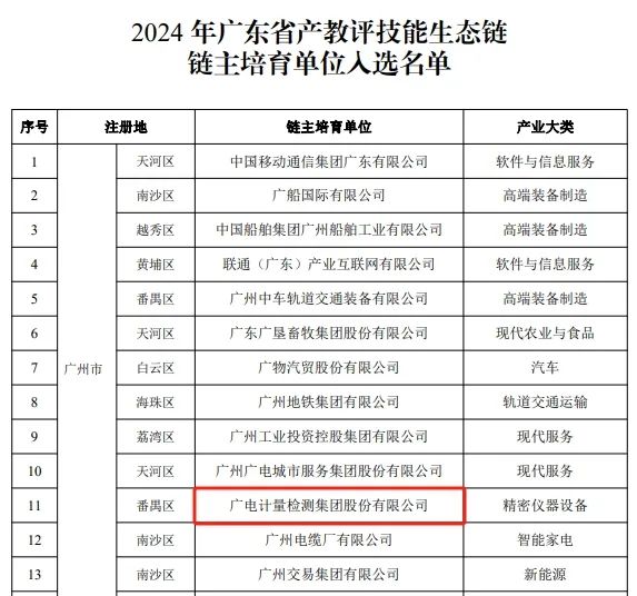 近日,广东省人力资源和社会保障厅公布《2024年广东省产教评技能生态链链主培育单位入选名单》,经各地市和省相关部门的专家评议和社会公示,广电计量成为2024年广东省产教评技能生态链链主培育单位之一。