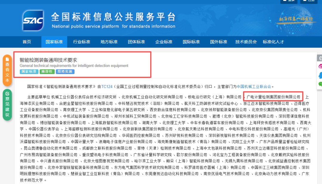 参编国标《智能检测装备通用技术要求》