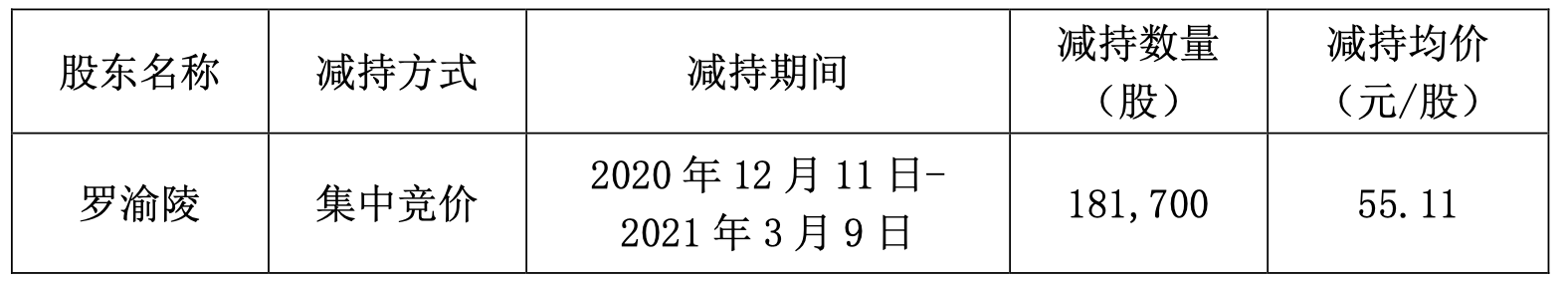 此次,罗渝陵最终减持了18.17万股,减持均价55.11元/股。据此计算,罗渝陵首次减持套现就超过千万,约1001.35万元。