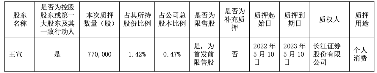 创始股东王宣质押77万股