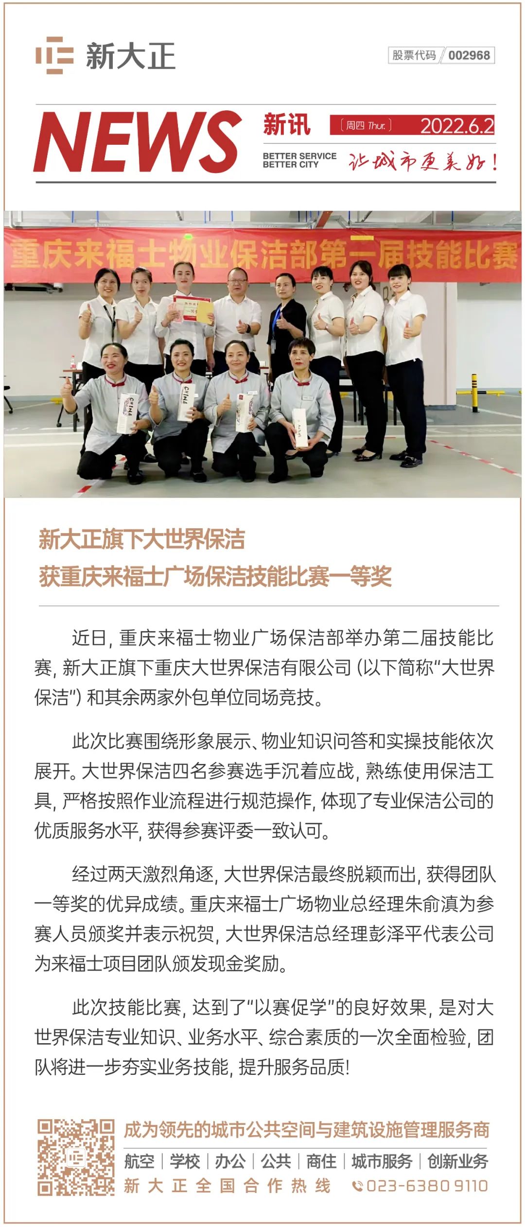 新讯NEWS丨新大正旗下大世界保洁获来福士广场保洁技能比赛一等奖