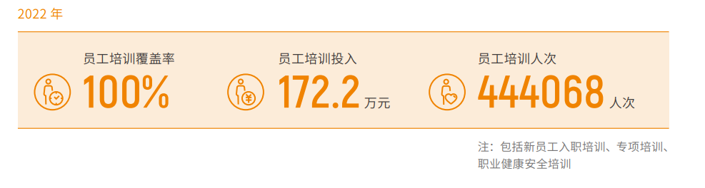 报告显示,新大正建立了系统的培养培训机制,提升员工的专业和行动能力。通过对不同层级员工开展有针对性的培训,帮助员工以最高效率实现自我提升。还采取专业培训、导师带徒和岗位实践等方式,帮助员工快速成长。2022年员工培训覆盖率为100%,员工培训投入172.2万元,员工培训人次超44万人。