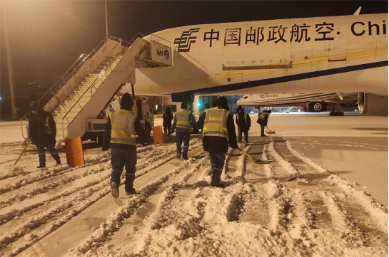 各服务机场项目员工加班加点除雪,保障旅客平安顺畅出行