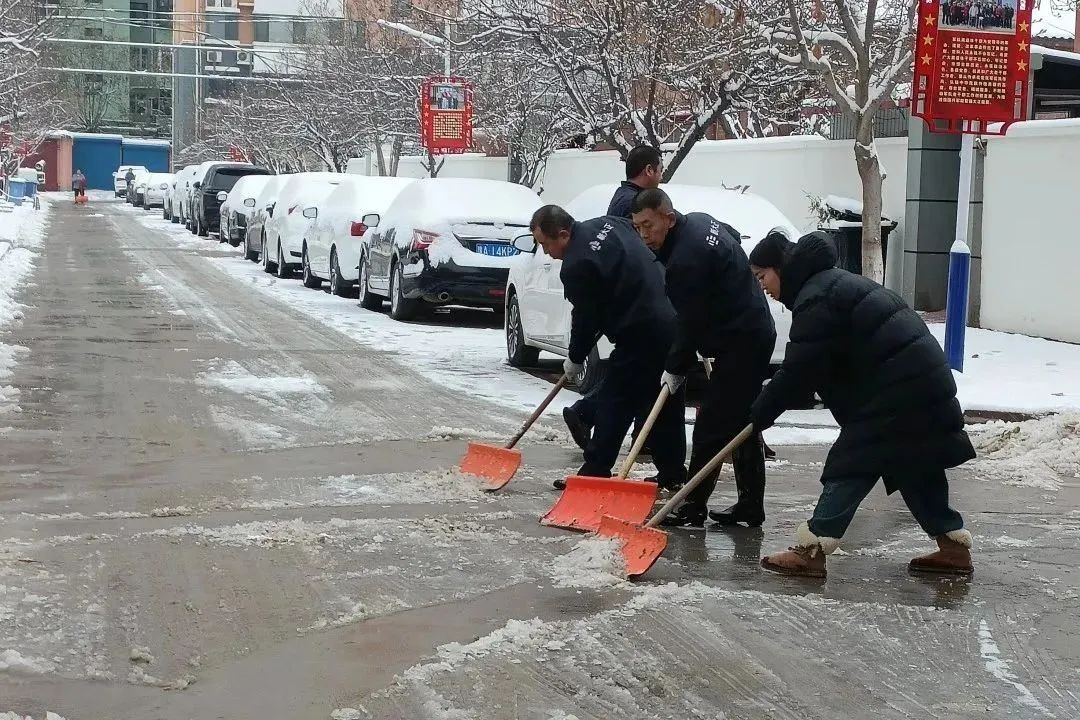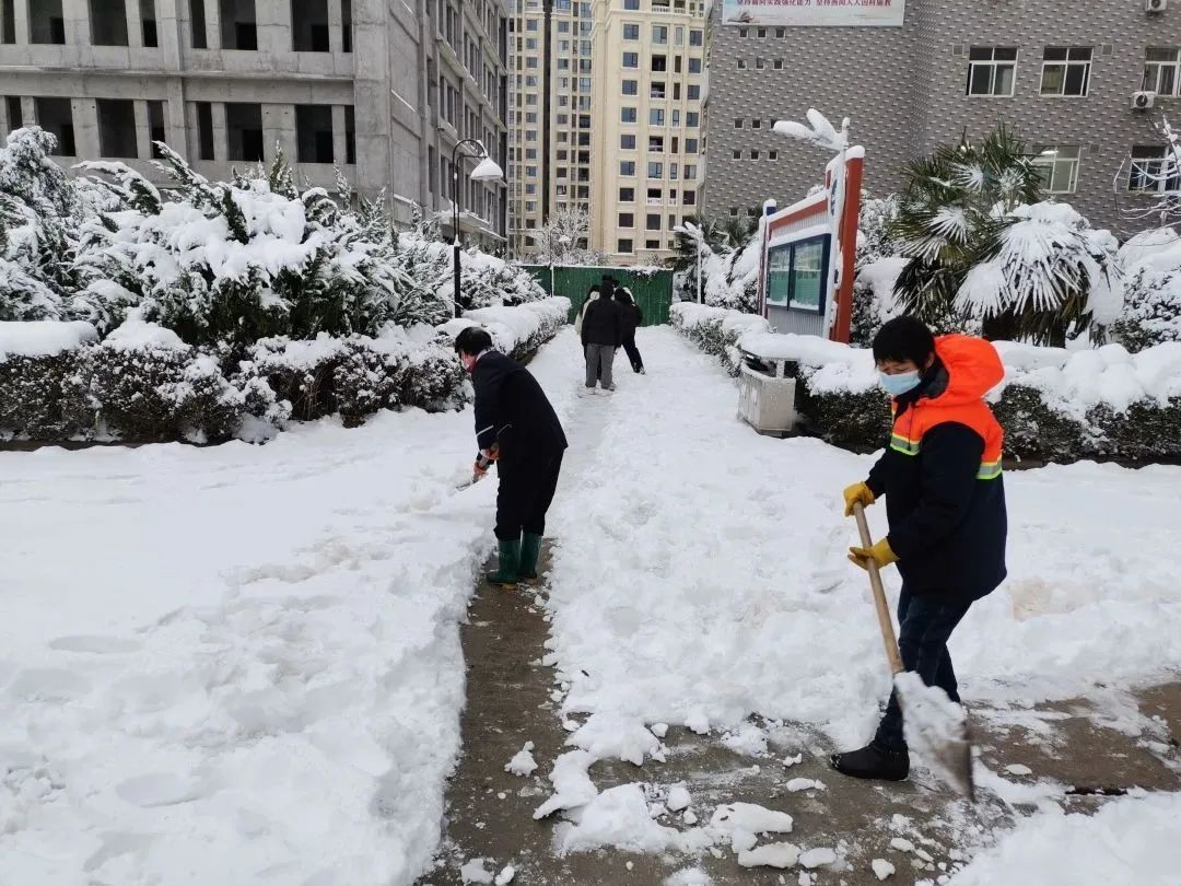 大雪来临,各项目物业人员坚守岗位,身披“白衣铠甲”,全力做好除雪除冰工作,保障客户安全及出行便利,给凛冽寒冬增添一份温暖!