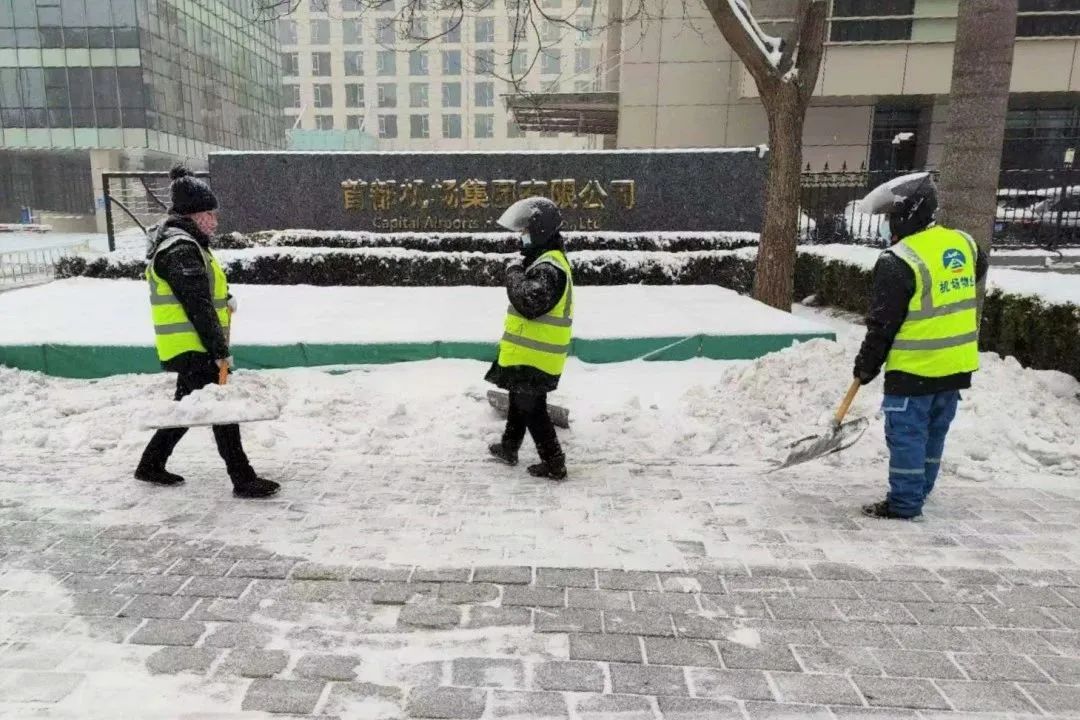 与此同时,在新大正服务的首都机场、天津滨海国际机场、石家庄正定国际机场、呼和浩特白塔国际机场等多个受降雪影响的机场项目,各项目以“确保运行安全、保障旅客出行”为首要目标,顶风冒雪,不畏严寒,与大雪凝结成冰拼速度。管理干部和员工积极配合,通力合作,在最快时间内对机场干道、高架桥、机坪和远机位等区域进行积雪清除,并使用清雪锹、清雪铲等工具,对航站楼周围降雪及时清理。全力保障机场的正常运转,最大可能消除大雪天气对航班航行的影响。