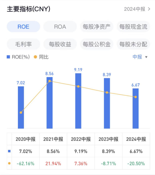 2024上半年,新大正ROE创近五年同期新低。2020年上半年-2024上半年,新大正ROE分别为7.02%、8.56%、9.19%、8.39%、6.67%。