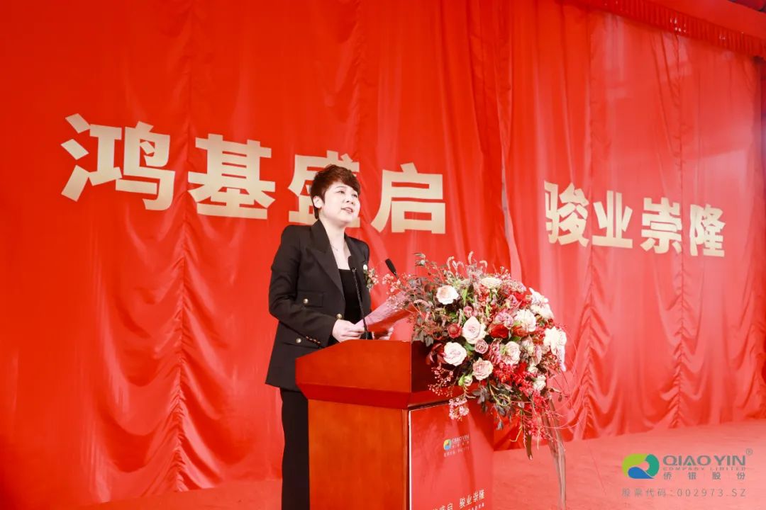▲侨银股份董事、执行总裁黄金玲代表员工发言