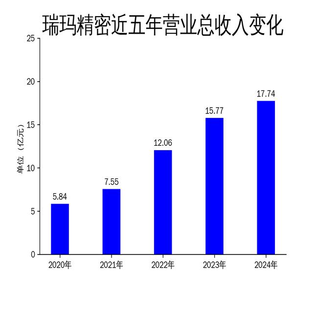 2025年5月6日,瑞玛精密发布了2024年年报。报告显示,公司全年实现营业总收入17.74亿元,同比增长12.51%;然而,归属净利润却由盈转亏,亏损2531.55万元,同比下降148.99%。扣除非经常性损益后的净利润更是大幅下降173.05%,亏损3428.08万元。尽管公司在汽车、新能源、移动通讯等领域持续发力,但盈利能力的大幅下滑引发了市场对其未来发展的担忧。
