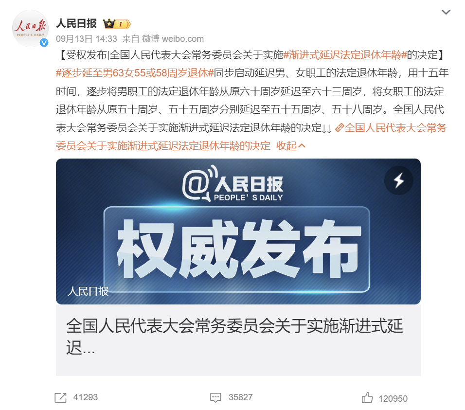 就在2024年9月13日,第十四届全国人民代表大会常务委员会第十一次会议表决通过了关于实施渐进式延迟法定退休年龄的决定。这一消息如同投入职场的一颗巨石,激起了千层浪。