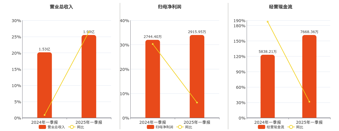 公司营业总收入为1.93亿元。归母净利润为2915.95万元。经营活动现金净流入为7668.36万元。