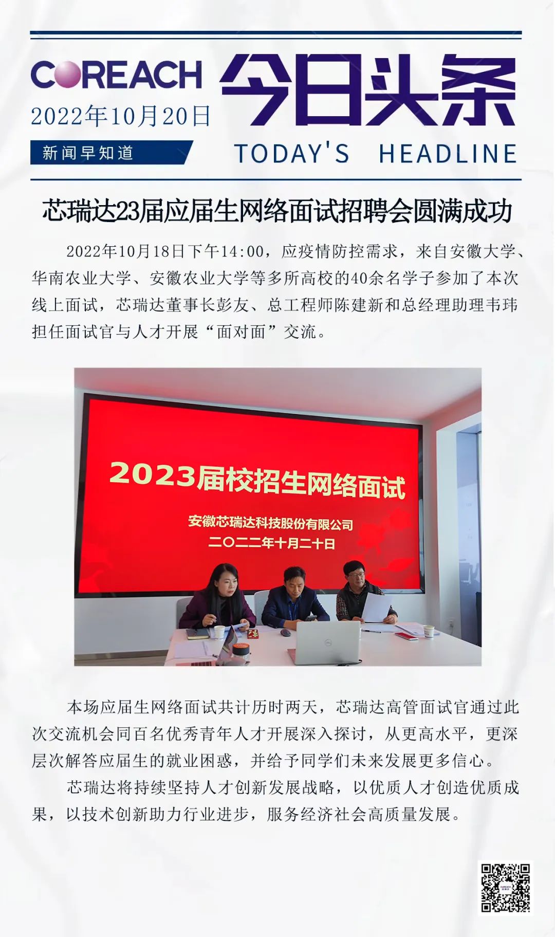 芯瑞达23届应届生网络面试招聘会圆满成功