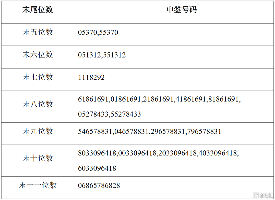 凡参与麒麟转债网上申购的投资者持有的申购配号尾数与上述号码相同的,则为中签号码。中签号码共23.1174万个,每个中签号码只能认购10张(1000元)麒麟转债。