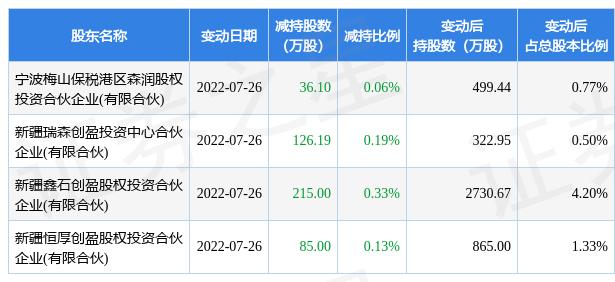 7月27日森麒麟发布公告《森麒麟:关于持股5%以上股东减持股份超过1%的公告》,其股东宁波梅山保税港区森润股权投资合伙企业(有限合伙)、新疆瑞森创盈投资中心合伙企业(有限合伙)、新疆鑫石创盈股权投资合伙企业(有限合伙)、新疆恒厚创盈股权投资合伙企业(有限合伙)于2022年7月15日至2022年7月26日间合计减持462.29万股,占公司目前总股本的0.7115%,变动期间该股股价上涨15.29%,截止7月26日收盘报36.5元。