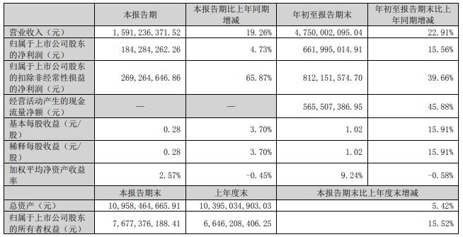 2022年前三季度,森麒麟实现营业收入47.50亿元,同比增长22.91%;归属于上市公司股东的净利润6.62亿元,同比增长15.56%;归属于上市公司股东的扣除非经常性损益的净利润8.12亿元,同比增长39.66%;经营活动产生的现金流量净额为5.66亿元,同比增长45.88%。