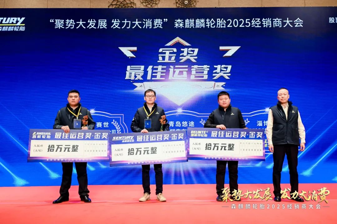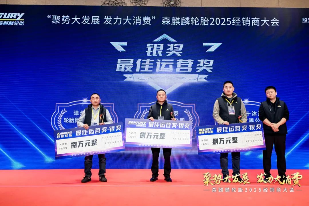 青岛悠途轮胎销售有限公司,张家口赛世机械设备有限公司,淄博明浩橡胶制品有限公司分别获得森麒麟、路航、德林特轮胎品牌最佳运营奖—金奖。