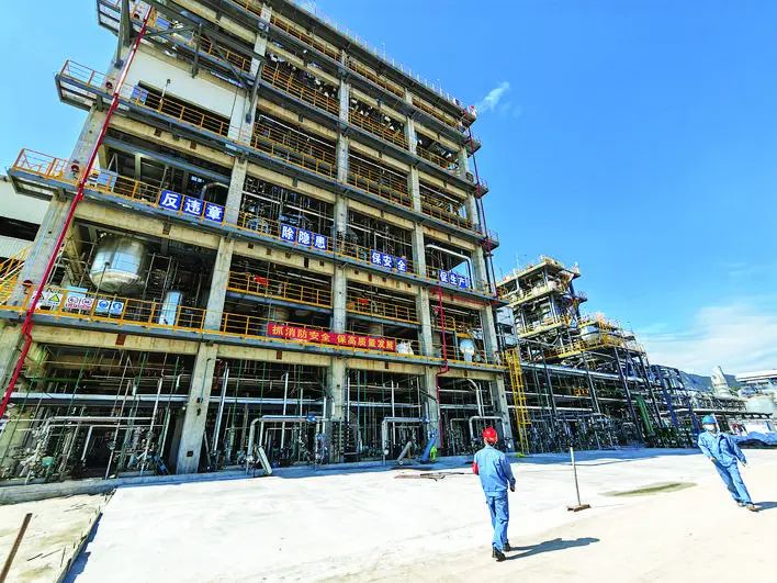 在附近的惠州宇新新材料有限公司(以下简称“宇新新材”)项目现场,年产15万吨顺酐装置高高耸立。2021年12月28日,该项目正式投产。“顺酐装置自投产以来,一直满负荷高质量运行,各项指标在行业内领先。”谭良谋介绍,该项目生产装置是全球单套产能最大的顺酐装置,采用全球先进的工艺包、优秀的顺酐催化剂和安全先进的顺酐反应器等,在满负荷生产的情况下,可年产液体顺酐15万吨。此外,该装置每小时副产高压蒸汽近200吨,除满足项目自有装置动力需求外,还有近一半富余蒸汽外供其他企业使用,大大提高了产品附加值。