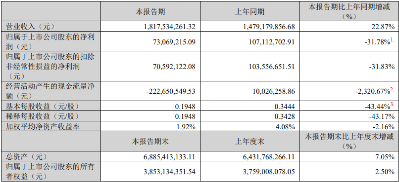 业绩层面,宇新股份2024年第一季度报告显示,公司实现营业收入18.18亿元,同比增长22.87%;归属于上市公司股东的净利润7306.92万元,同比下降31.78%。