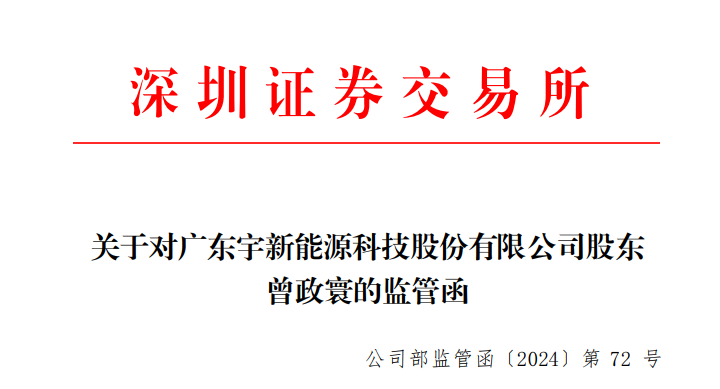 触违规减持红线,广东宇新能源科技股份有限公司(下称“宇新股份”)股东收监管函。