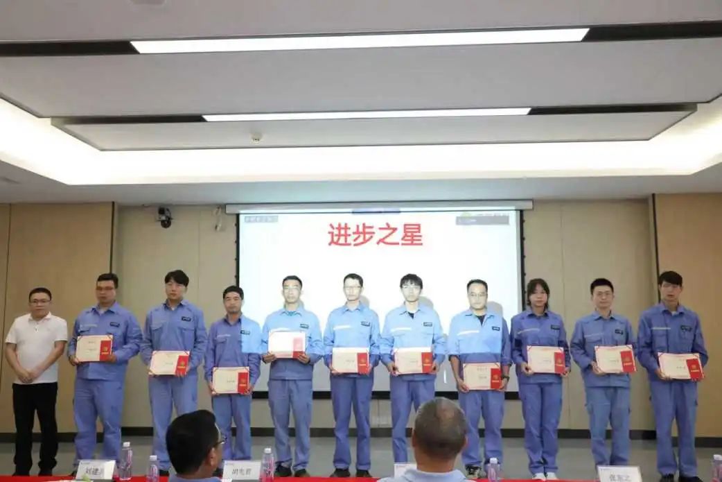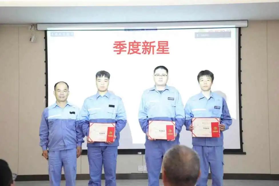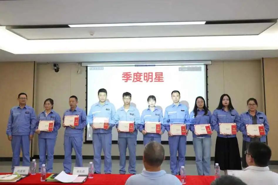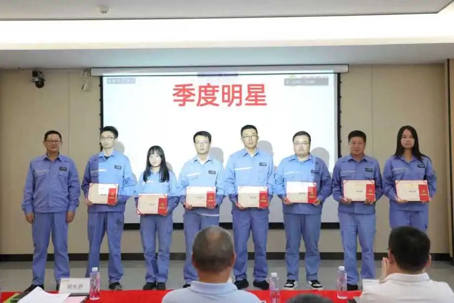 在2024年第二季度的各项工作中,部分员工表现优异、进步较大,分别被评为“季度明星”“进步之星”“季度新星”;同时,为更好地适应公司发展和岗位需要,公司进行了组织架构和人事调整。会议上,宇新股份副总经理湛明宣读评优表彰决定、宇新股份副总经理周丽萍宣读职务任免红头文件。公司领导们为获奖员工颁发了证书、奖金并合影留念。