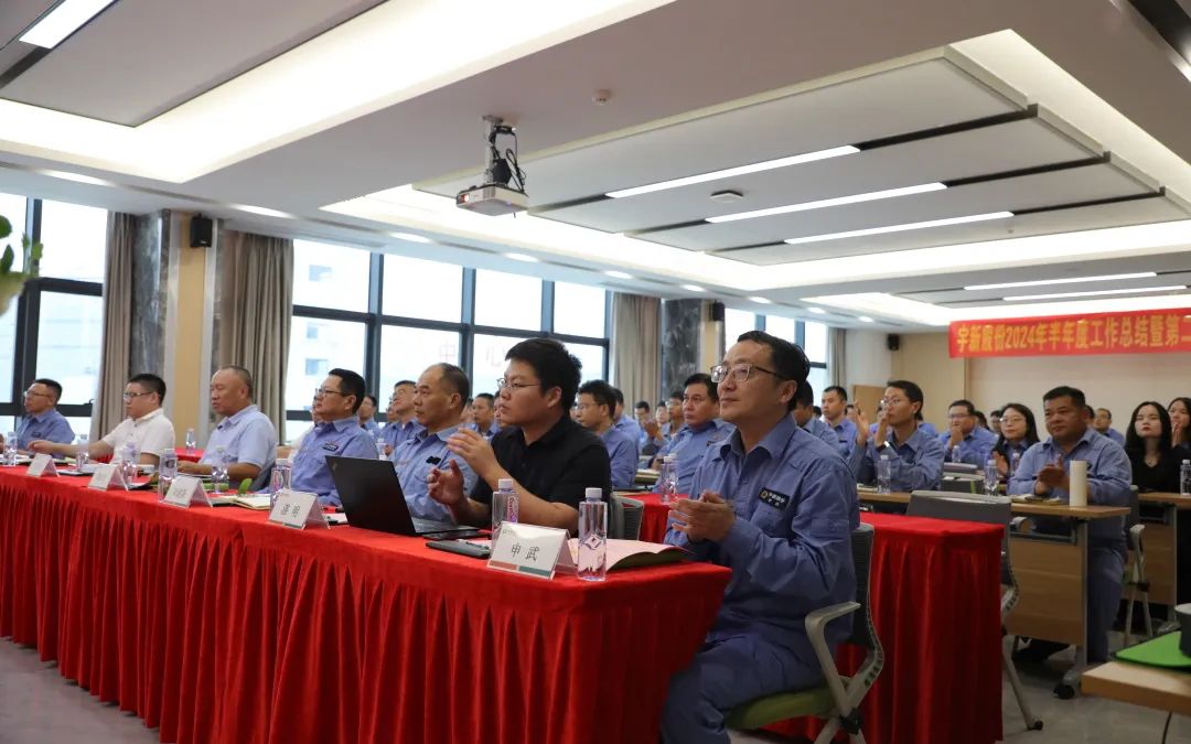 宇新股份总经理胡先君对公司上半年主要工作进行了分析和总结,从六个方面肯定了取得的成绩,同时查摆问题和不足,分析面临的机遇和挑战,并对下半年的各项工作任务进行安排部署,强调要从生产组织、采购销售、HSE管控、项目建设、研发创新和企业管理六个方面下功夫。青衿之志,履践致远;行远自迩,笃行不怠。胡总号召大家在公司董事会及董事长的坚强领导下,瞄准既定战略目标,坚定信心、脚踏实地、落实责任,奋力推动各项工作,确保全面完成公司年度目标任务,共同开创宇新更加美好灿烂的明天!