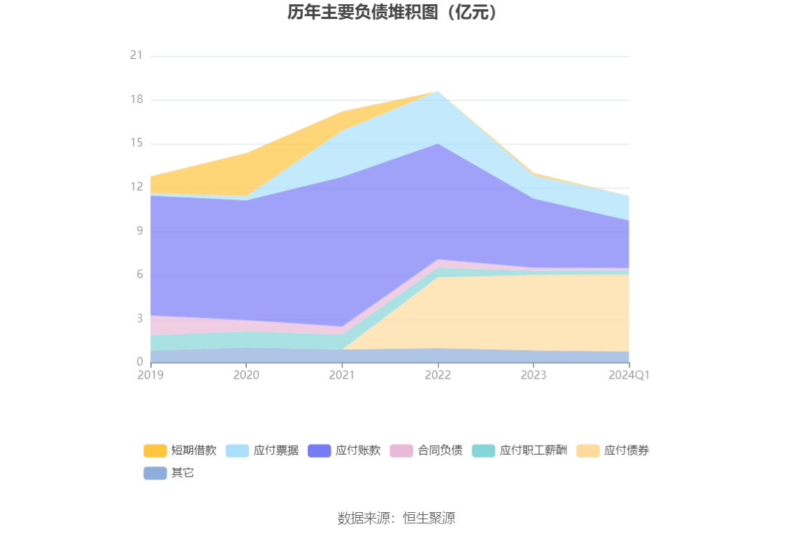 负债重大变化方面,截至2024年一季度末,公司应付账款较上年末减少31.32%,占公司总资产比重下降4.34个百分点;应付债券较上年末增加1.61%,占公司总资产比重上升1.33个百分点;应付票据较上年末增加4.36%,占公司总资产比重上升0.57个百分点;应交税费较上年末减少36.94%,占公司总资产比重下降0.09个百分点。