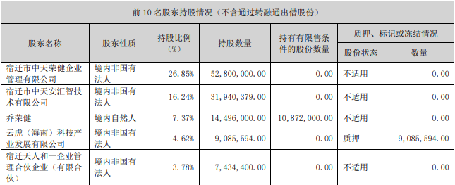 2025年7月1日至2025年7月16日,天人和一通过集中竞价减持方式减持97,500股,减持股数占总股本比例0.0484%,交易价格区间为33.010元/股-34.200元/股;通过大宗交易方式减持138,700股,减持股数占总股本比例0.0689%,交易价格区间为29.1500元/股。