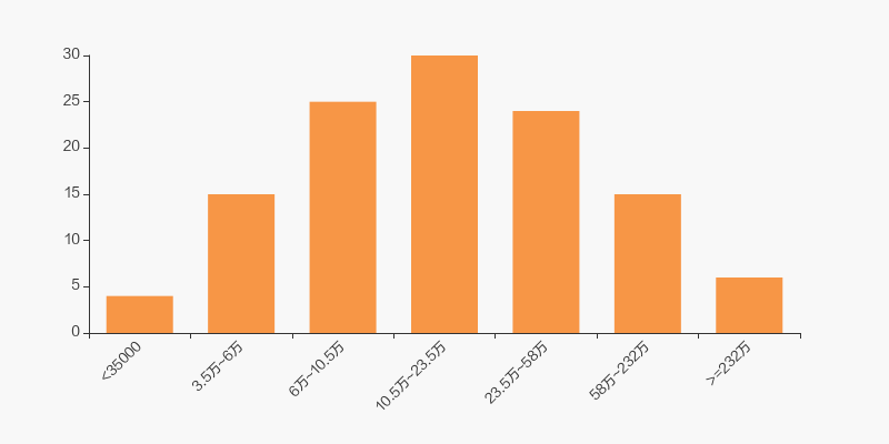 甘源食品股东户数低于行业平均水平。根据Choice数据,截至2023年2月10日食品饮料行业上市公司平均股东户数为5.54万户。其中,公司股东户数处于2万~4.5万区间占比最高,为30.00%。