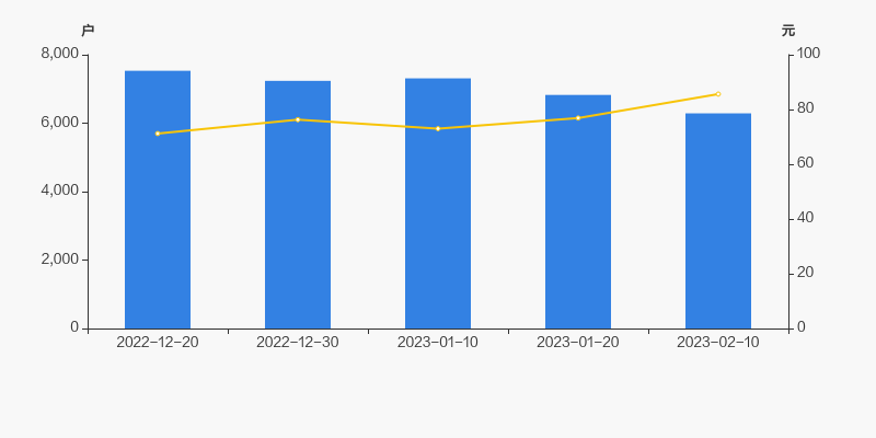 截至2023年2月10日,公司最新总股本为9321.58万股,其中流通股本为3641.99万股。户均持有流通股数量由上期的5335股上升至5793股,户均流通市值49.6万元。