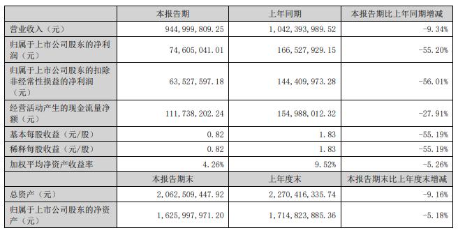 8月13日,甘源食品(002991)发布2025年中报。财报显示,上半年,甘源食品实现营收9.45亿元,同比下滑9.34%;归母净利润7460万元,同比大跌55.20%;扣非净利润6353万元,同比大幅下降56.01%,业绩承压明显。