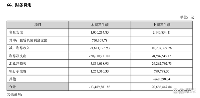 年报显示,公司财务费用为-1348.96万元。去年同期为2069.64万元。其中,利息支出为100.02万元,利息收入2161.11万元,汇兑损益为585.4万元。