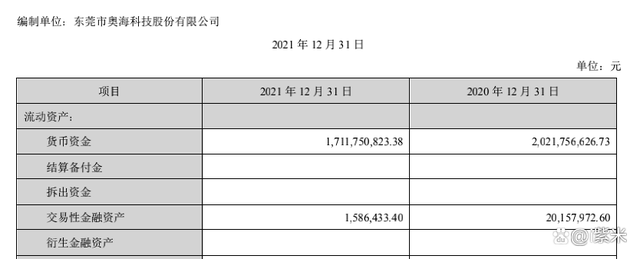 【i紫米】4月20日,东莞市奥海科技股份有限公司2021年年度报告显示,截止报告期末,公司货币资金17.12亿元,去年同期为20.22亿元;交易性金融资产158.64万元,去年同期为2015.8万元。同时,公司期末借款为0,去年同期也为0。