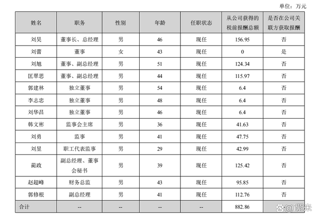 年报显示,报告期内公司实际支付董事、监事、高级管理人员报酬共882.86万元,董事长、总经理刘昊2021年从公司获得报酬为156.95万元,董事、副总经理刘旭2021年从公司获得报酬为124.34万元,副总经理、董事会秘书蔺政2021年在本公司领取薪酬为125.42万元。