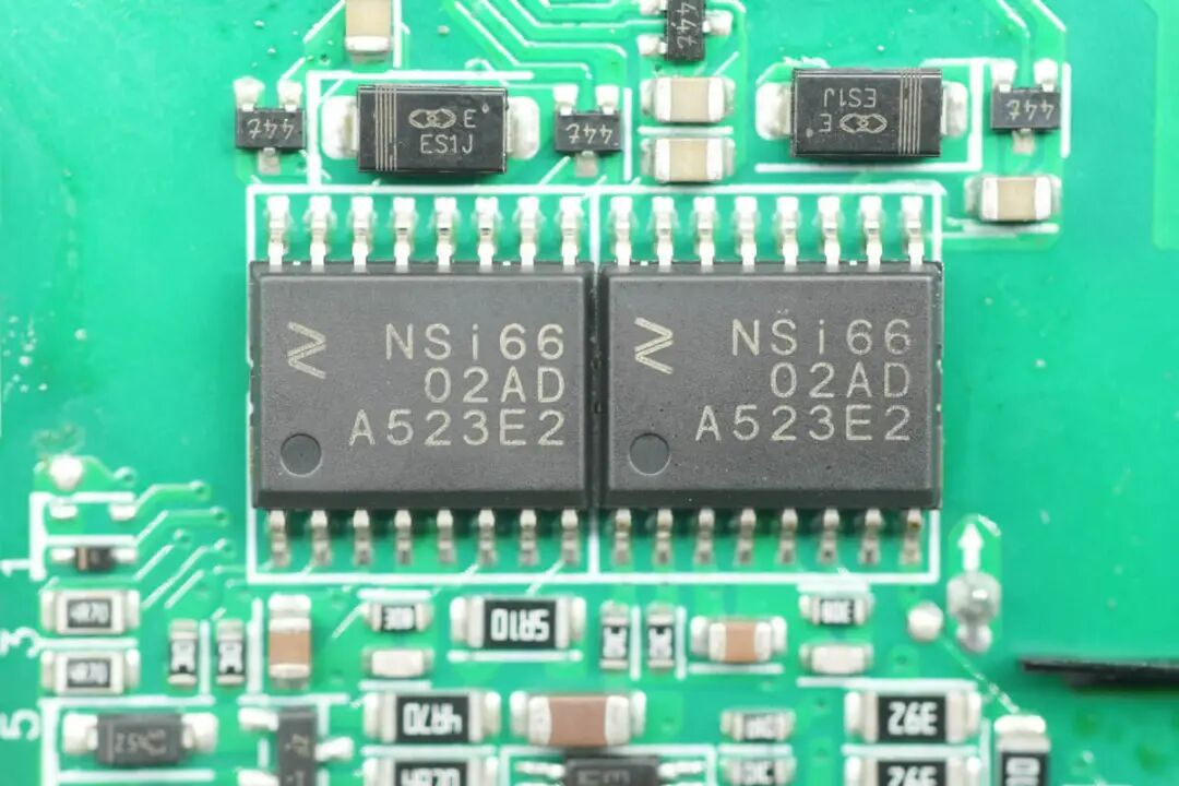 隔离驱动器来自纳芯微,型号NSi6602AD,芯片内置隔离双通道栅极驱动器,具备5.7KVrms隔离能力,具备4A拉电流和6A灌电流能力,采用SOW16封装。