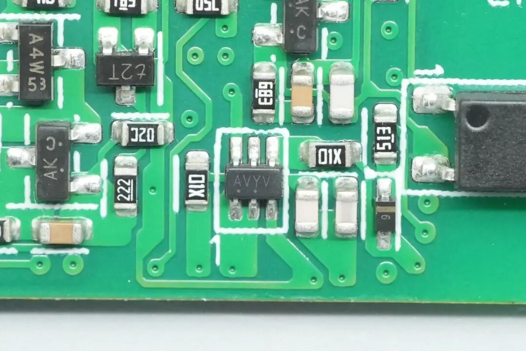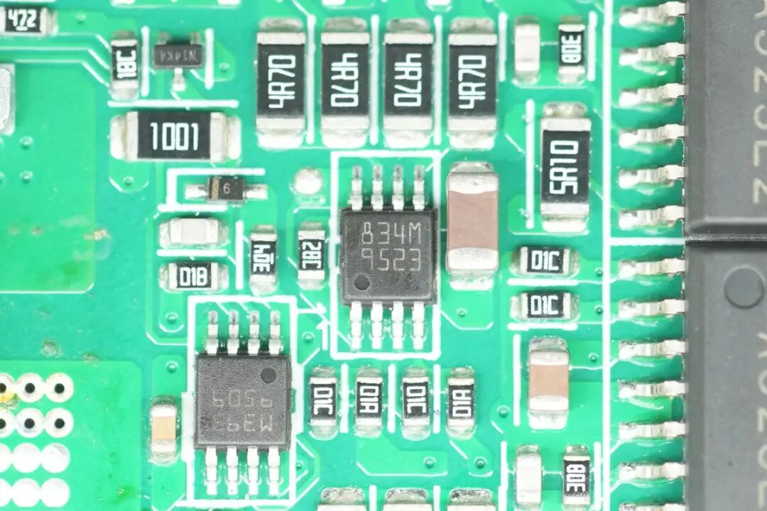 内侧设有电压比较器,运放,光耦,存储器和二极管等元件。